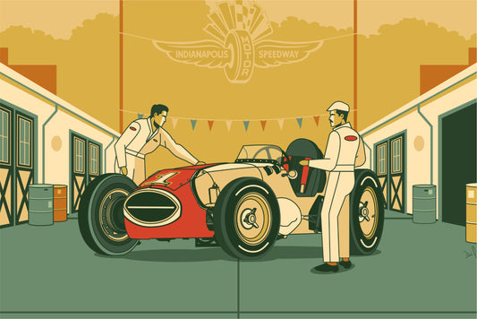 Indianapolis Motor Speedway® "The Garage of Champions - Gasoline Alley" Retro Wall Art PrintRegular price $45.00 USDRegular priceUnit price / per-